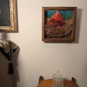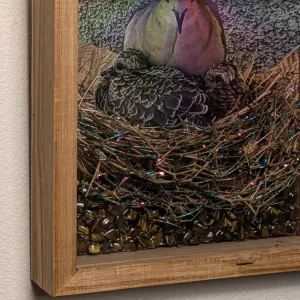 Our store features a stunning collection of custom art display frames adorned with bird photography, semi-precious stones, and hand-crafted nests made from naturally foraged plant materials. Each frame, meticulously crafted by William and Maria, goes through over 125 steps, ensuring a unique, high-quality piece every time.