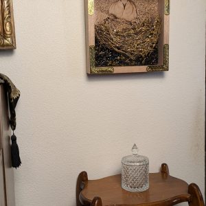 Canary Wood Frame with Rainbow Mourning Dove Brood and Tiger Eye Stone Sculpture