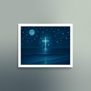 Images that center the cross and the living Word of God, weaving light, landscape, and symbol into devotional art.
