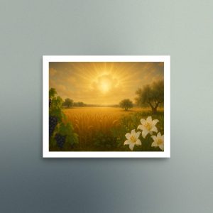 Golden Wheat Field and Sky with White Lilies and Grapes – Landscape